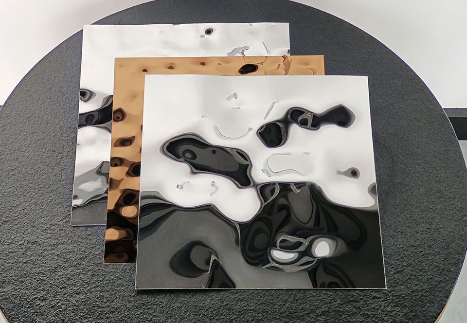 Tấm thép không gỉ sóng nước, bước sóng loại trung đang sử dụng kỹ thuật dập và đánh bóng gương để tạo cho kết cấu kim loại có hiệu ứng nước. Nó rất phổ biến trong thiết kế nội thất hiện đại trên toàn thế giới. Tấm trang trí inox sóng nước có tính trang trí cao, bền, an toàn và thân thiện với môi trường, có khả năng chống ăn mòn cao và không phai màu. Nó được sử dụng rộng rãi trong trang trí tường ngoại thất, trang trí tường nền, trang trí thang máy, trang trí trần nhà, cảnh quan rèm nước, đồ nội thất nghệ thuật và các lĩnh vực khác. Mặt hàng : Tấm sóng bước trung trên nền gương và có thể được mạ PVD theo yêu cầu Nguyên liệu: 304/316/430... Origin : Trung Quốc Kích thước: 1000mm*2000mm, 1219mm*2438mm, 1219mm*3048mm, 1500mm*3000mm,.... Độ dày : 0.3-3.0mm