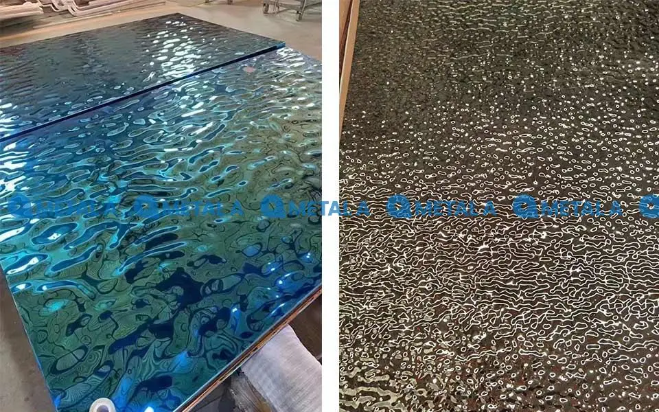 Tấm sóng nước bước nhỏ là một trong những sản phẩm hoàn thiện hiệu ứng nước từ thép không gỉ. Độ dày khuyến nghị là 0,6-1,20mm, dễ dàng và không nặng khi lắp đặt trong dự án trang trí.