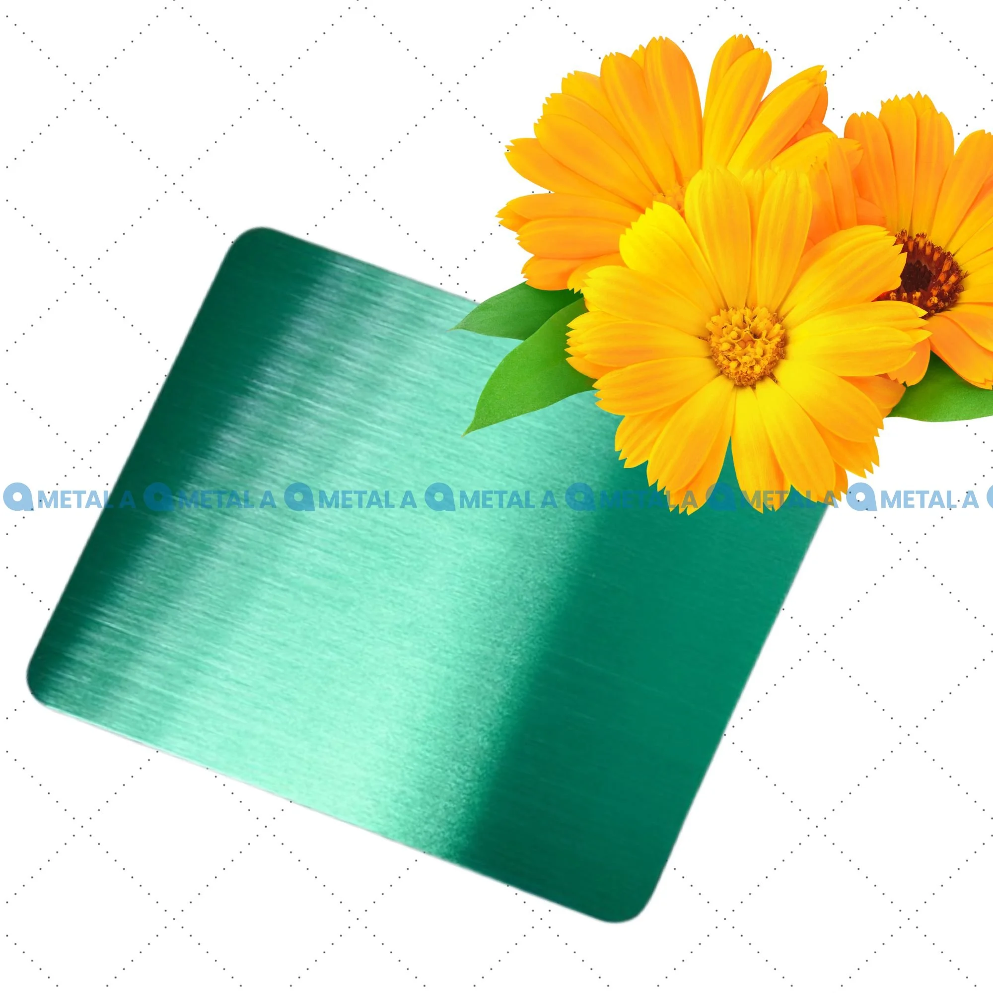 Tấm inox bề mặt xước được mạ PVD màu xanh lá ấn tượng, tạo hiệu ứng bất ngờ thú vị thu hút sự quan tâm của người đối diện