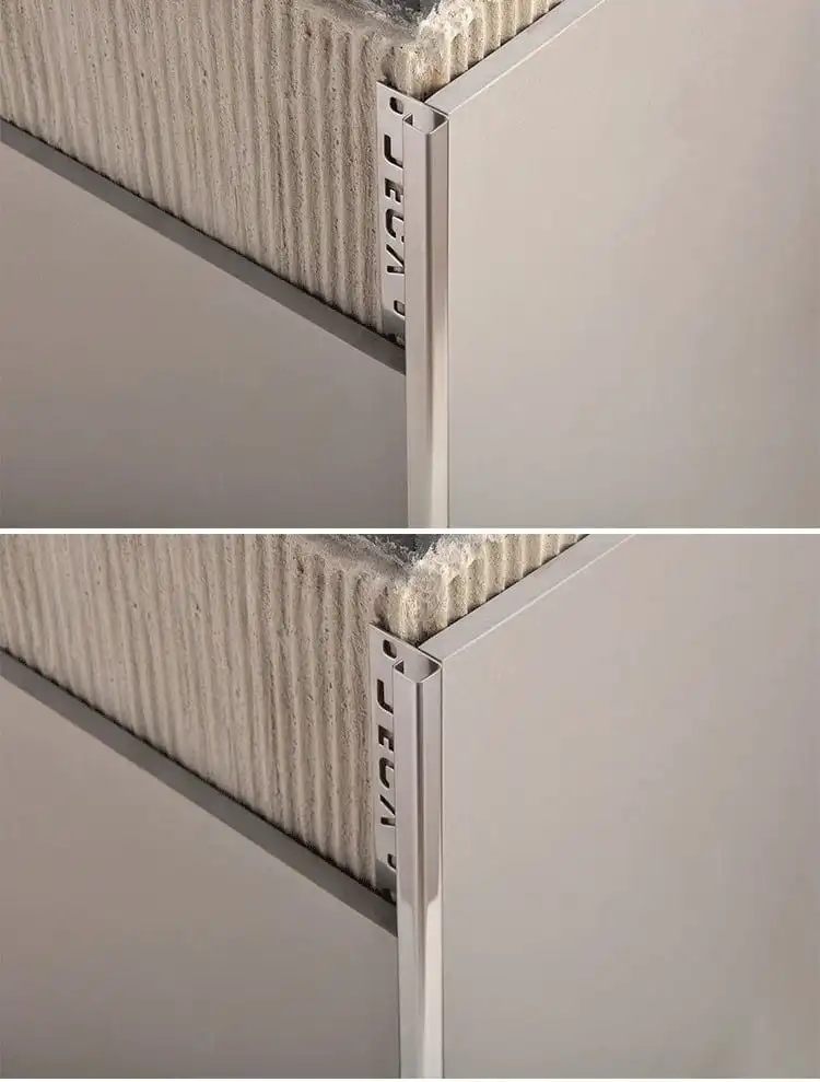 Màu inox lên chuẩn, độ bền màu cao, không bị phải màu trong quá trình sử dụng. Nẹp inox ốp gạch góc vuông góc phần tạo sự nổi bật, giúp trang trí cho góc ốp lát thêm tinh tế, sang trọng.