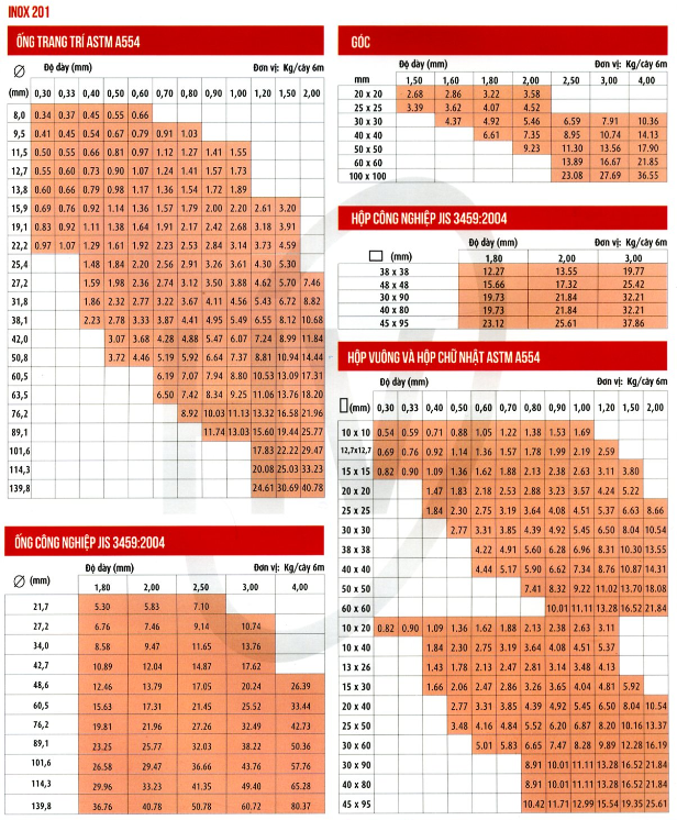 NOTE: Công thức tính ống 304 và 316 cùng chung một công thức